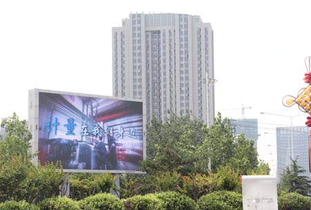 為擴(kuò)大宣傳效果,在活動(dòng)現(xiàn)場(chǎng)外,位于富華路與福壽街交叉口的城市LED大屏幕上還播放了由省質(zhì)監(jiān)局拍攝的《計(jì)量在我們身邊》視頻宣傳片,引得不少市民駐足觀(guān)看。
