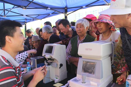 計(jì)量人員為市民免費(fèi)檢測(cè)眼鏡質(zhì)量