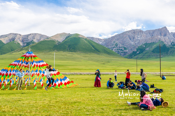 天峻山下面就是一望無(wú)際的天峻草原,在這里有不少藏民在此生活順便接待游客。天色還早,我和我的小伙伴們就在此拍照嬉戲。高原的寬曠真的能讓人從壓抑的城市生活中解放出來(lái),盡情的抒發(fā)自己的情懷和展現(xiàn)自己。