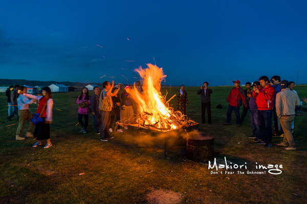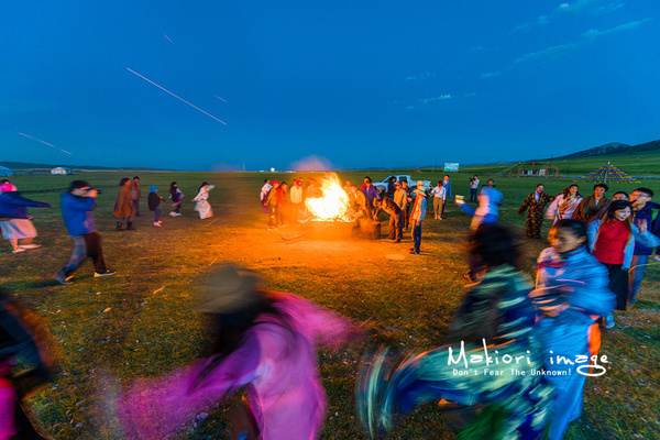 夜色襲來(lái),天空的云彩也被陽(yáng)光染上了一層緋紅,大地開始沉睡,山上放牧歸來(lái)的牛羊時(shí)不時(shí)發(fā)出幾聲叫喚。但是,一場(chǎng)別開生面的草原party卻即將上演。