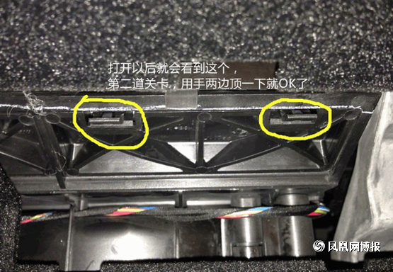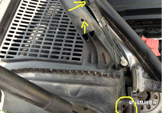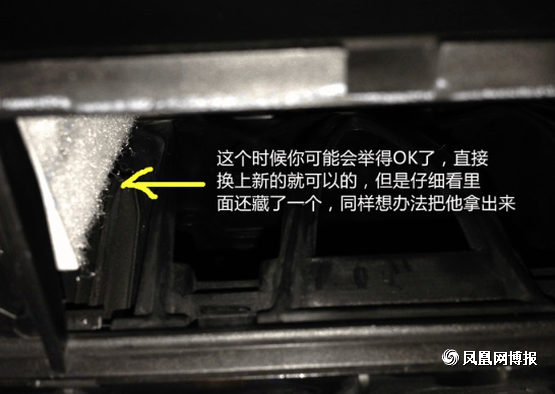 接下來我們再來拆接外部的空調(diào)濾芯, 黃色標(biāo)出的地方就是機(jī)關(guān)所在,圓圈的部分就只要用手指一捏就可以松掉提起,箭頭部分是拔出來后的樣子,所以童鞋們不用擔(dān)心用力一拔就可以了。